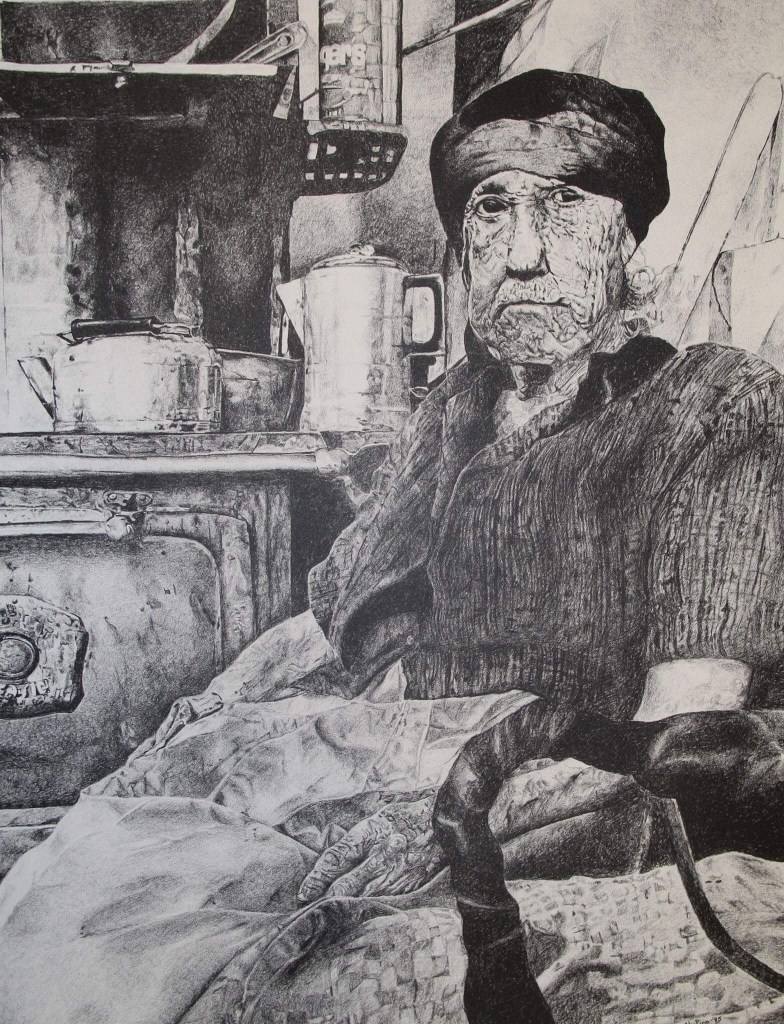 Bio: The Graphite Lithograph portrays, subject, Mr. Ortega was owner of the City Shoe Repair in Santa Fe New Mexico